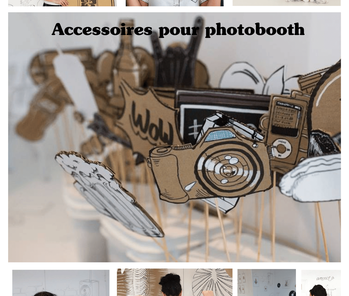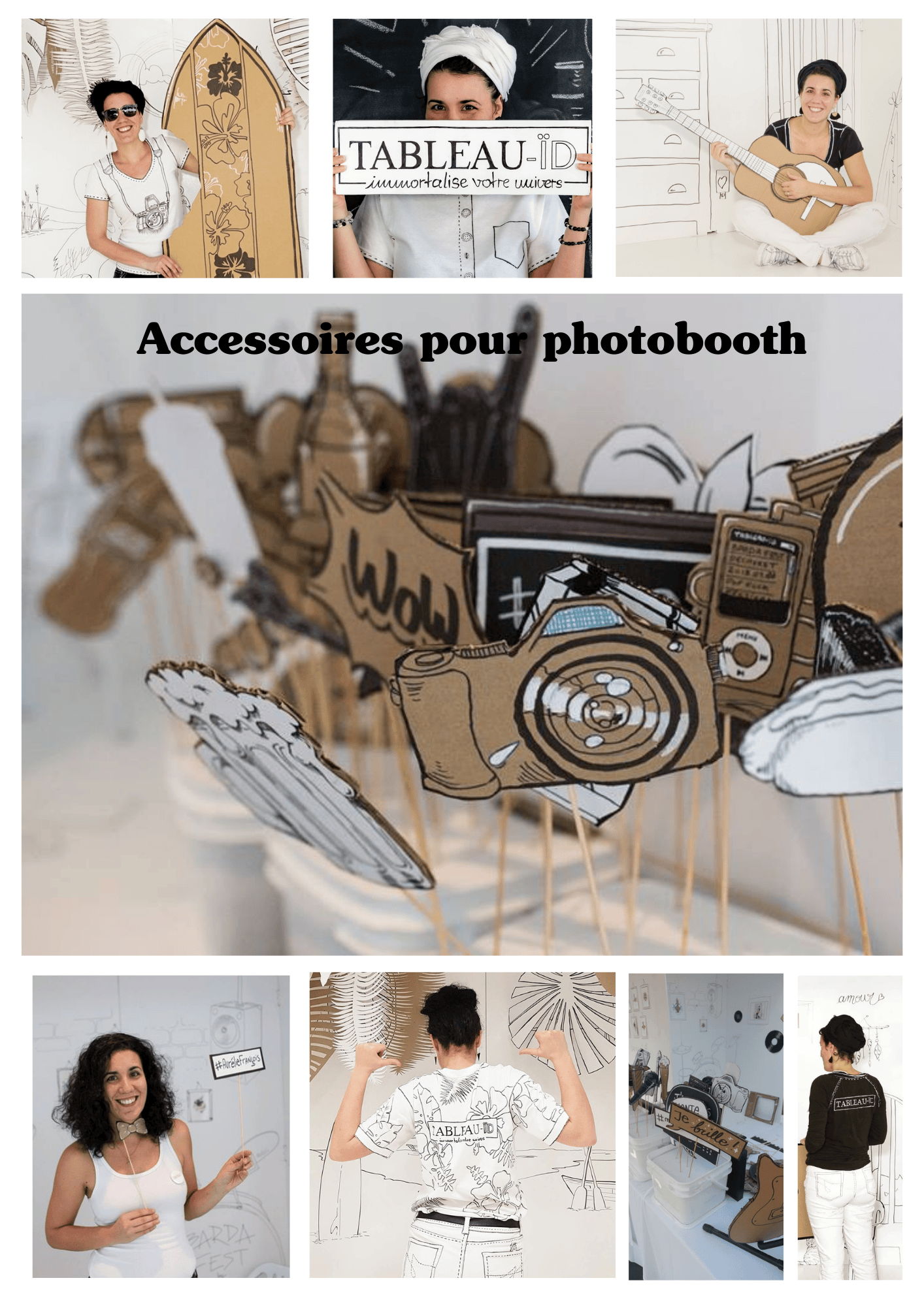 Accessoires pour photobooth personnalisés. Conception libre et personnelle en fonction de la liste et des photos de références fournis par Ana Peeters.